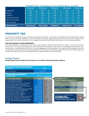 assessments. The County of Riverside collects property taxes and disseminates the revenues to various taxing agencies.