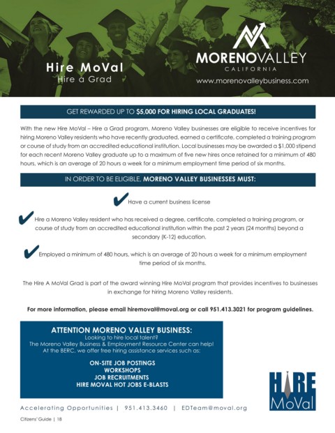 With the new Hire MoVal – Hire a Grad program, Moreno Valley businesses are eligible to receive incentives for