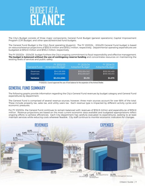 For FY 2023/24, the General Fund continues to remain balanced with revenues of $152.8 million and expenditures of $152.8