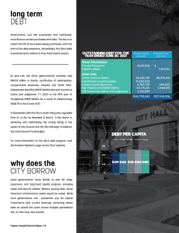 is predominantly related to long-lived capital assets. OUTSTANDING DEBT FOR THE Governmental Business Type