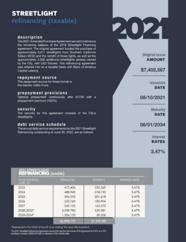 the remaining balance of the 2018 Streetlight Financing in October 2021 to refund the outstanding portion of both
