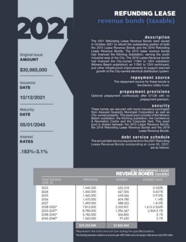 the remaining balance of the 2018 Streetlight Financing in October 2021 to refund the outstanding portion of both