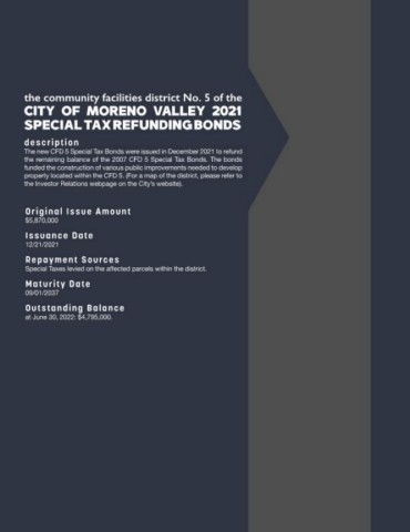 Page 17 - Moreno Valley City 2022 Bonded Debt Summary