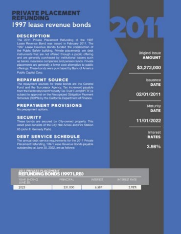 The 2011 Private Placement Refunding of the 1997 The 2013 Refunding Lease Revenue Bonds were issued