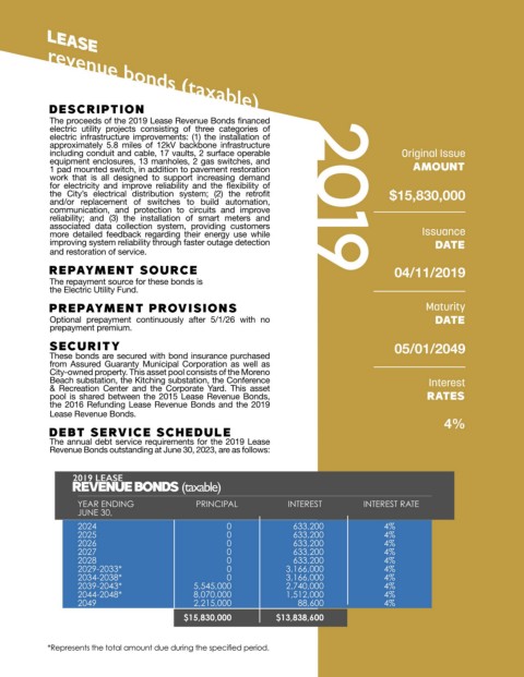 the City’s electrical distribution system; (2) the retrofit 2019 $15,830,000