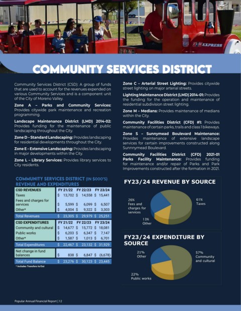 Community Services District (CSD): A group of funds Zone C – Arterial Street Lighting: Provides citywide