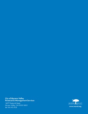 City of Moreno Valley Financial & Management Services 14177 Frederick Street Moreno Valley, CA 92552-0805 www.moval.org Tel. 951.413.3021