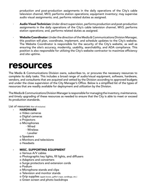 assignments in the daily operations of the City’s cable television channel, MV3; performs