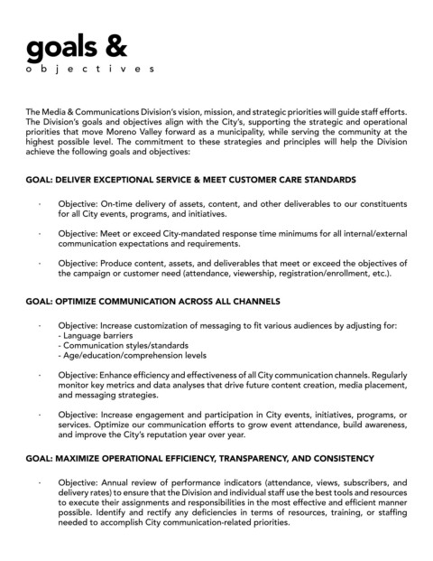 · Objective: Enhance efficiency and effectiveness of all City communication channels. Regularly