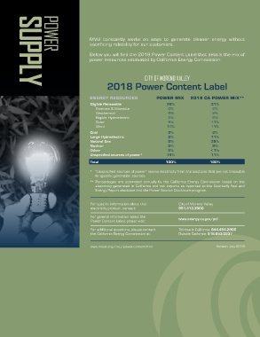 Below you will find the 2018 Power Content Label that details the mix of