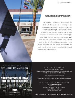 YOU’VE GOT GREAT IDEAS. Contact the City Clerk’s Offi ce at (951) 413-3001 for details.